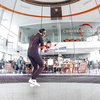 L’aventure commence par un défriefing avec le moniteur. Celui-ci vous accompagne tout le long du vol. Il vous apprend la position à adopter, la façon d’entrer et de sortir du tube ainsi que les gestuels de langage puisque dans le tube, avec la puissance du vent, impossible d’entendre quoi que ce soit.