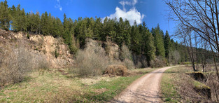 Ainsi, en prenant vers le sentier de gauche nous avons continué notre chemin jusqu'à un second Y. De nouveau, en prenant le sentier de gauche, nous avons pénétré dans la forêt et avons entamé une descente de quelques mètres. Ainsi, nous avons contourné le village de vacances jusqu'au lieu dit-Enkelbergmühle. A partir de la scierie, nous avons remonté la rue en prenant sur la gauche et sommes arrivés à un "parking". Nous avons alors fait une "tête d'épingle" et avons pris le sentier montant dans la forêt et avons alors suivit le balisage des GR (peinture rouge et blanche).